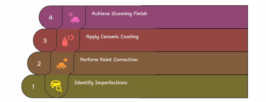 Getting the perfect smooth surface requires a multi-stage correction process. With proper tools and techniques the leveling, cleaning get rid of any imperfections in the surface of the car. Once perfected then the ceramic layer can be applied.